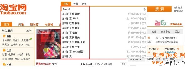 淘寶搜索框中下拉條、搜索提示“你是不是想找”,屬性選擇區,這部分出現的詞一般都是比較熱門的關鍵詞,流量相對較高,但是詞量較小。(圖中畫紅框的地方都可以是關鍵詞來源)