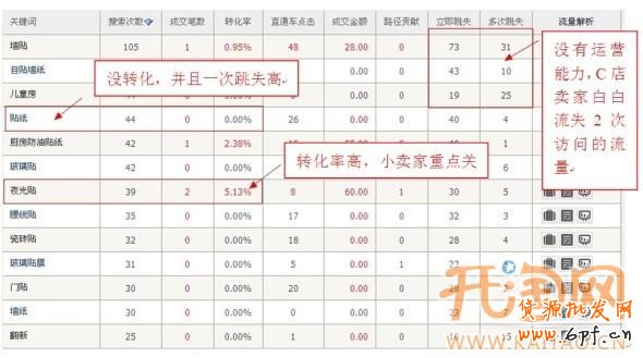這3種詞,我們對應的要采取行,首當其沖的就是要把那些完全沒有搜索的廢詞馬上去掉,之后就是流量高轉化低的詞,判斷這個詞是否有2次利用價值,完全取決一次跳失的高低,這個在今后談到關聯營銷問題的時候會詳細說明。