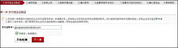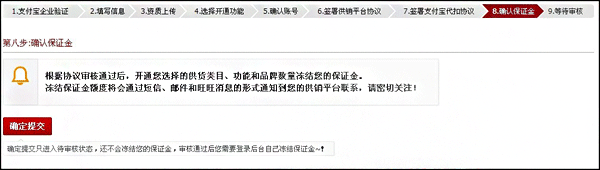 驗(yàn)證支付寶。這里請注意品牌商或供應(yīng)商申請入駐時請使用旺旺小號先登陸,請務(wù)必不要用企業(yè)支付寶登陸,入駐過程中填寫的企業(yè)支付寶請務(wù)必不要綁定任何旺旺。