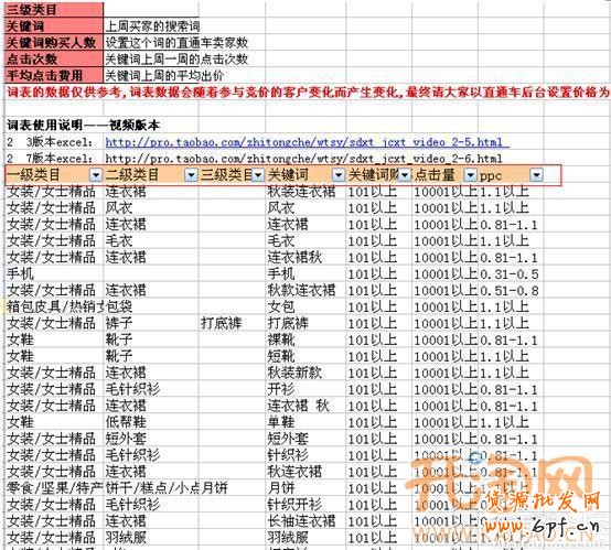 之前有top5萬也可以做參考,現在淘寶取消了top5萬的更新;那我們可以用淘寶top20萬進行添加關鍵詞,首先我們找到我們的類目及二級類目進行篩選,通過關鍵詞購買人數和點擊量PPC的對比找出性價比高的關鍵詞進行添加。