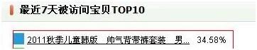 同時,從店鋪銷售排行來結合看,我們可以看到店鋪銷量排行是排名第一的寶貝訪客數排行僅僅是第三名,說明這款寶貝的轉化率真的比訪客數更多的那兩款商品要高,那么這款寶貝就相對來說是很目前階段店鋪最優可能成為爆款的商品。這時候,你就需要進行重點優化了,加大這款寶貝的流量投入。