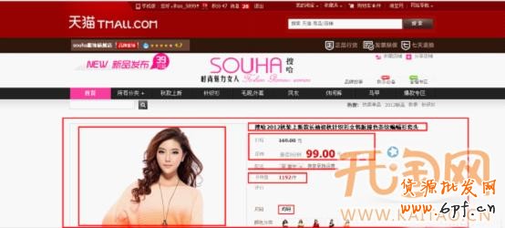 截圖的單屏頁面下部分2/3屏中,集中表現主推寶貝的圖片或促銷活動。改頁面中,主推的圖片占比點擊流量為78%。其余的1/3用來表現其他次重要信息,如店鋪導航、店招、店鋪評分等。