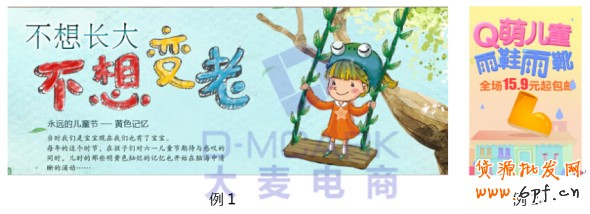 上面的兩個例子分別運用了兩種不同的方式,去修飾我們的字體,使得我們的字體更能凸顯主圖,更形象的傳達出我們鉆石展位的主圖。如“例1”通過將字體改變成蠟筆字的形式,讓字體更加的突出,更讓“兒童節 不想長大”這個主題更加的突出,吸引。同理,我們也可以按照我們鉆石展位的主題對我們的文字進行加工:如畢業季時我們可以用粉筆字形式,女人節可以用水彩畫形式等等。