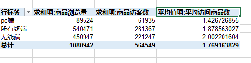 比如這個,平均訪問商品數是通過計算的。就是商品瀏覽量除以的商品訪客數。這是昨為數據源。然后經常會做的事情就是需要做報表統計什么的。結果就是這樣: