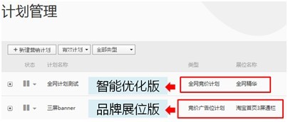 4、 我建立好計劃后,如何區分品牌展位版和智能優化版呢?