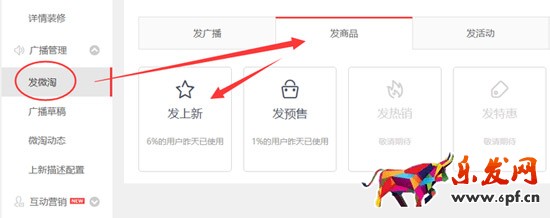 如上圖,上新是非常簡單的;如果你店鋪里有上新品,點擊微淘管理界面里左側菜單欄里的“發微淘”,選擇“發商品”標簽,選擇“發上新”即可進行;而大多大品牌商戶,比較擅長使用“發預售”來進行新款的預熱,對于店鋪粉絲(比如日新增興趣用戶較多店鋪或活躍會員數量較多)較多的商戶是非常有用的,結合店鋪活動和對應的推廣去快速打造新品流量和效果反饋以此構造權重維度。