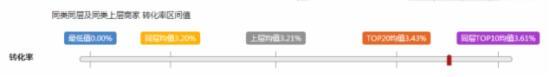因?yàn)樵谀壳肮俜降牡赇伜笈_(tái)數(shù)據(jù)指標(biāo)中,無(wú)法直接查看靜默轉(zhuǎn)化率的行業(yè)數(shù)據(jù),所以我們可以通過(guò)店鋪的轉(zhuǎn)化率行業(yè)均值,結(jié)合自己店鋪其它相關(guān)數(shù)據(jù)指標(biāo)所處的級(jí)別,估算自己店鋪的目前所處行業(yè)水平。