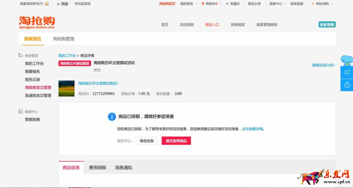 1、進入淘搶購商家后臺,在已報名商品列表找到通過審核的商品;
