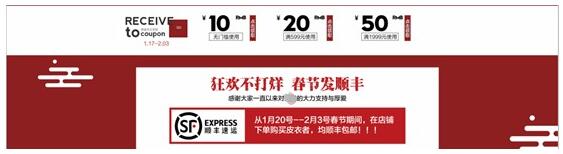 過年期間配合店鋪優惠券與重點款春節狂歡不打烊,直接簡單粗暴順豐包郵。