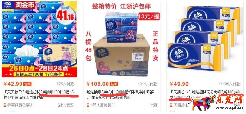 這個需要結合到我們的關鍵詞里面去,如果我們產品突出的是性價比,那么我們的主圖里面就可以相應的展示這款產品的性價比信息,比如我們下面的圖片,還是衛生紙,直接在圖片上面突出寶貝多少抽,有多重,以及價格,讓用戶可以直接知道相比超市來說會不會更劃算。