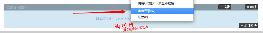 3、在自定義模塊的地方 右鍵-審查元素