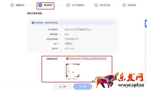 這里面要注意注意注意: 1、要確定好這個支付寶賬號是個人還是企業(yè); 2、下面填的信息都是這個支付寶里面的認證信息。沒辦法確定的話可以聯(lián)系支付寶客服 第四步:申請方(原店主)實人認證+材料填寫(申請方認證) 注意:看上面的步驟環(huán)節(jié)“申方資料”步驟是申請方(原店主)認證;“填寫資料”步驟是接收方(新店主)認證(看下面第八步)。