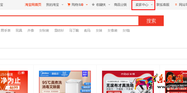 1在360瀏覽器登錄淘寶,點擊賣家中心。