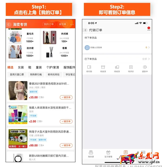 可以從進入APP首頁的【淘賣專供】頁面,選擇好自己想要購買的商品,點擊【+鋪貨單】,前往右上方的【鋪貨單】中選擇自己想要鋪貨的商品,選擇鋪貨的第三方服務工具,進行鋪貨即可。